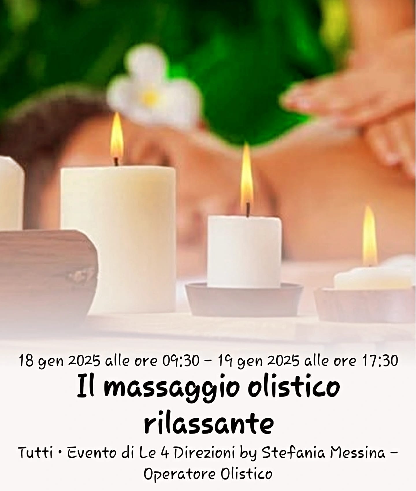 Due giornate intense e molto gratificanti con parte teorica e parte pratica. Aperto a tutti Il percorso è di due giorni più una mezza giornata a distanza di circa un mese dove si andrà a chiarire eventuali dubbi che sono emersi in questo periodo. Si parlerà di tutto quello che ruota attorno al corpo umano